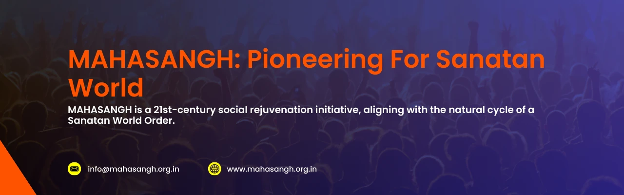 MAHASANGH, a 21st-century social rejuvenation initiative, has envisioned a Memorandum for benchmarked actions within the Sanatan World. Nature’s cycle includes dominant phases: the Vedic World, the Organised Christian World, and now a rotation towards an organised Sanatan World. This natural cycle towards a Sanatan World Order has been foreseen for the second half of the 21st century. MAHASANGH aims to contribute to this upcoming Sanatan World.